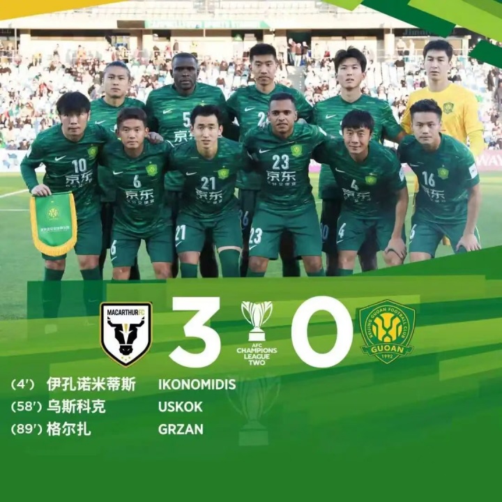 国安官方在本场比赛的战报中写说念:“10月2日,在2025-26亚冠二级联赛小组赛第2轮中,北京国安客场0-3负于麦克阿瑟FC。上半场比赛第4分钟,对方由伊孔诺米蒂斯打入一球。面临澳超球队的肉体招架强度,北京国安光显不太合乎。第12分钟,张玉宁禁区角落鼎力抽射,莫得射中球门。第23分钟,李磊前插到禁区内射门,球被对方门将化解。终末技巧,李磊的前插再度制造恐吓,可惜莫得变成射门。上半场比赛放手,北京国安0-1麦克阿瑟FC。易边再战,第52分钟,张玉宁禁区外倒钩射门偏出。第58分钟,对方由6号乌斯科克再入一球。随后,国安接连换上法比奥、古加、曹永竞、林良铭和塞尔吉尼奥等队员加强紧迫。第71分钟,古加禁区前沿的远射偏出。第89分钟,麦克阿瑟FC由格尔扎攻入第3球。最终,北京国安客场0-3负于麦克阿瑟FC。