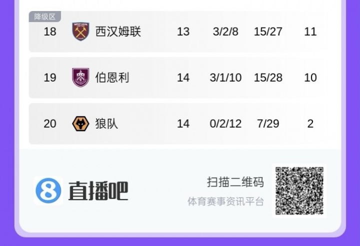 本赛季英超,狼队14轮未始胜绩,2平12负仅得2分,五大联赛“唯独档”,意甲(维罗纳)和德甲(好意思因茨)的垫底球队皆有6分,西甲(皇家奥维耶多)和法甲(欧塞尔)的垫底队拿到了9分。