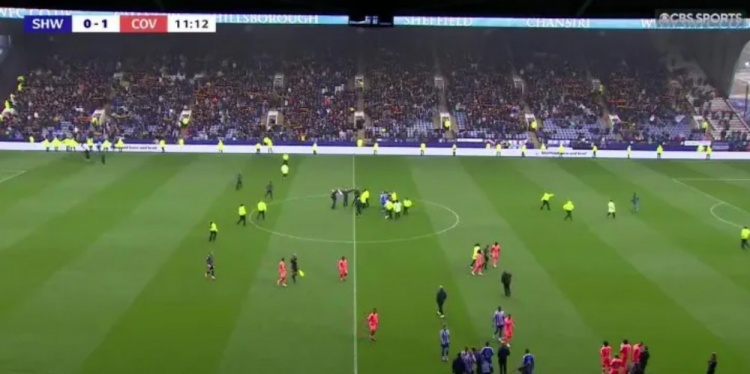 10月4日讯 据《太阳报》报说念,谢菲尔德星期三与考文垂的比赛因球迷闯入球场而中断,比赛开动仅10分钟后,主场球迷冲入球场抗议雇主钱斯里。