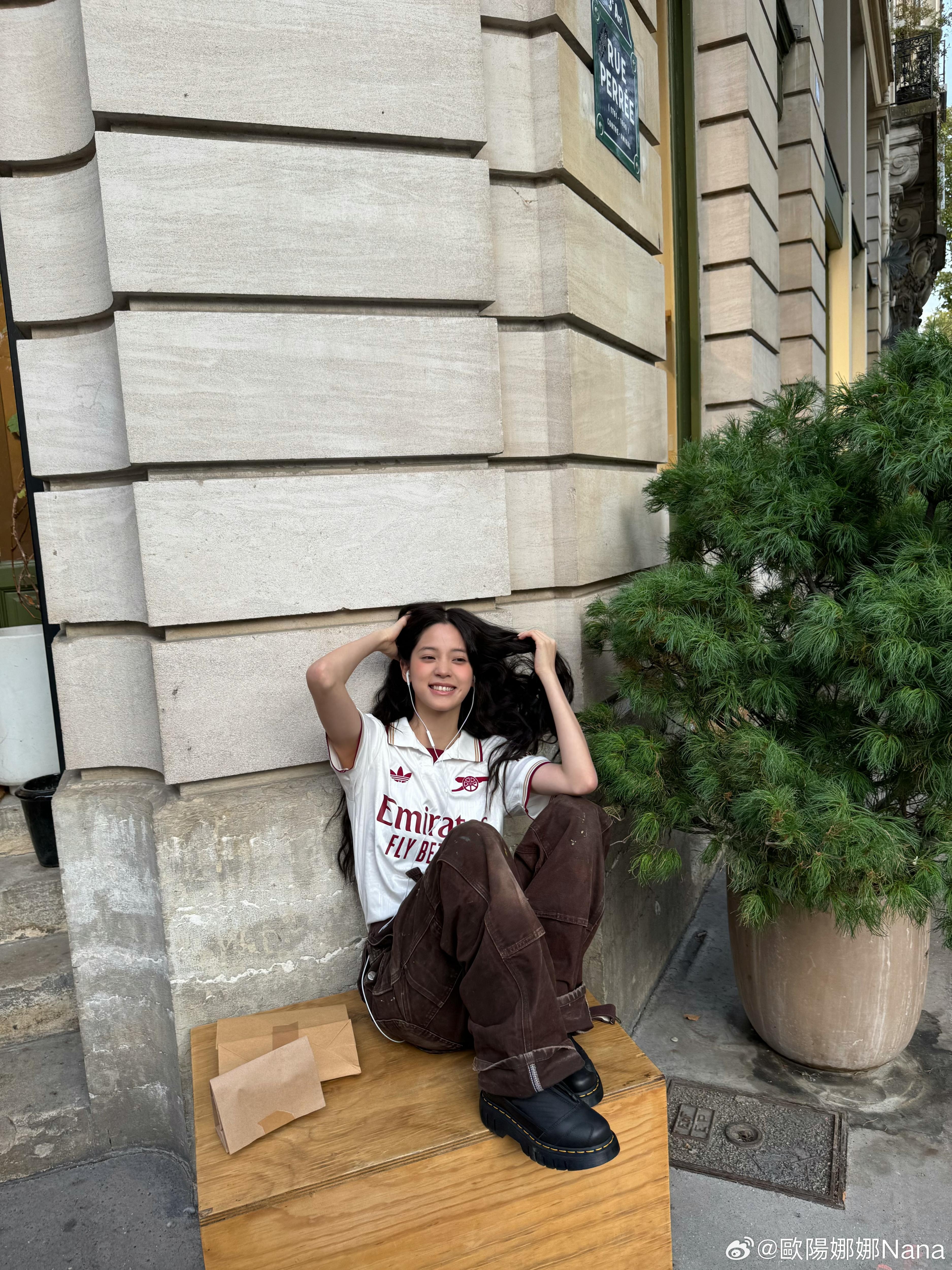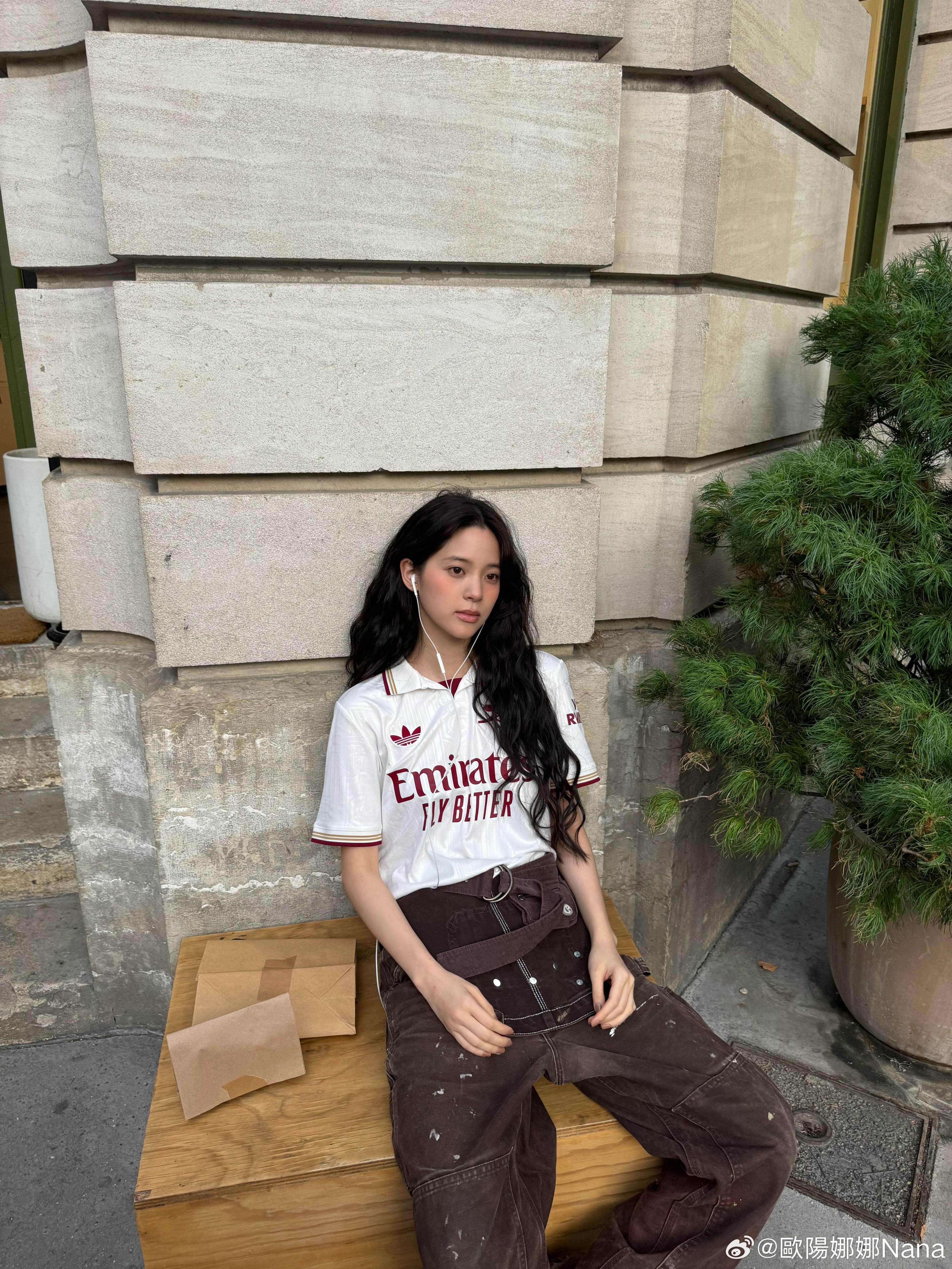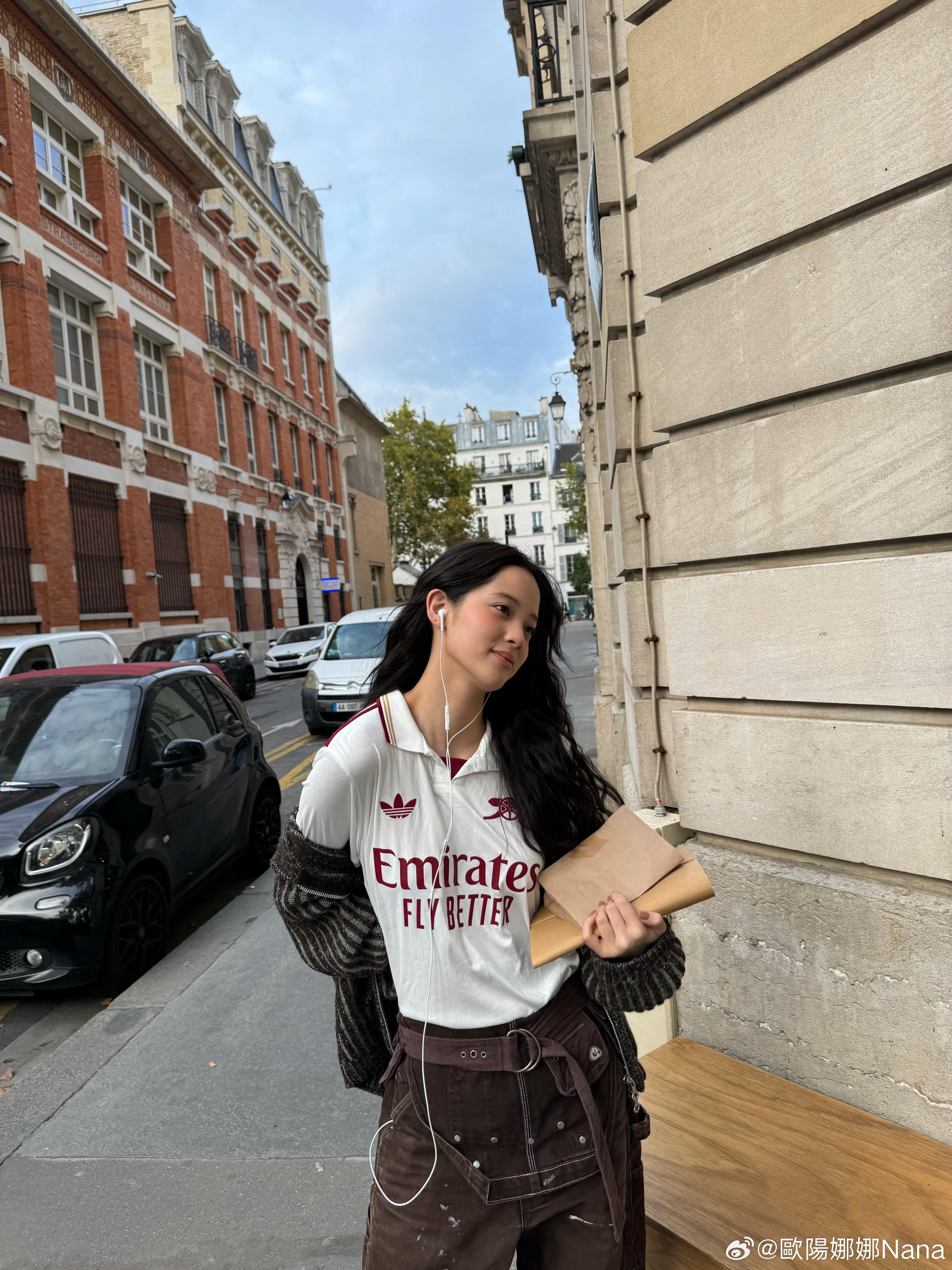 10月05日讯 女艺东谈主欧阳娜娜更新社媒,晒出了我方身穿阿森纳第二客场球衣在巴黎街头踱步的相片。