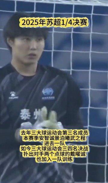 现在,亚泰队门将吴亚轲受伤,王智峰红牌停赛,除了安智诚和邹德海,18岁的年青门将戴曜城也加入亚泰一线队练习。此前,戴曜城代表泰州队开辟“苏超”比赛。