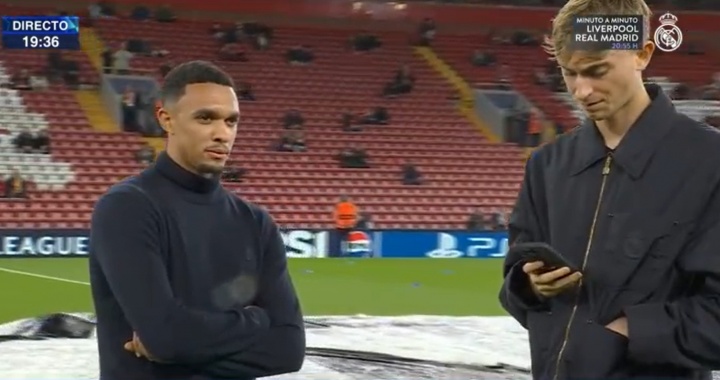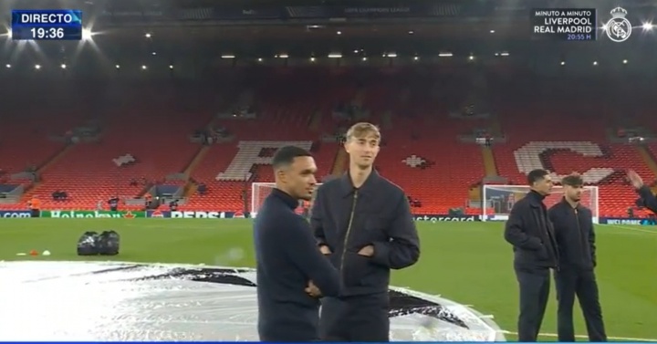 阿诺德代表皇马出战欧冠,重返安菲尔德,现场飘起了小雨!