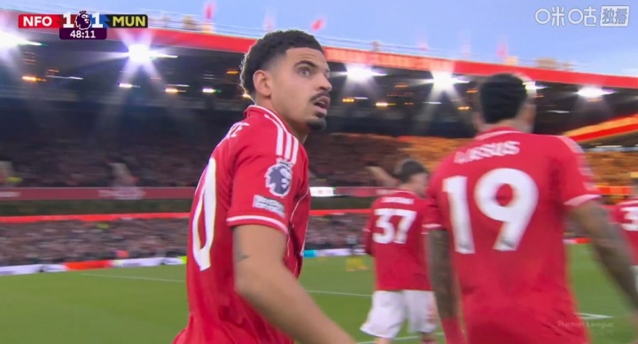 11月02日讯 曼联vs丛林第48分钟,耶茨肋部传中,吉布斯·怀特头球破门,曼联客场1-1丛林!