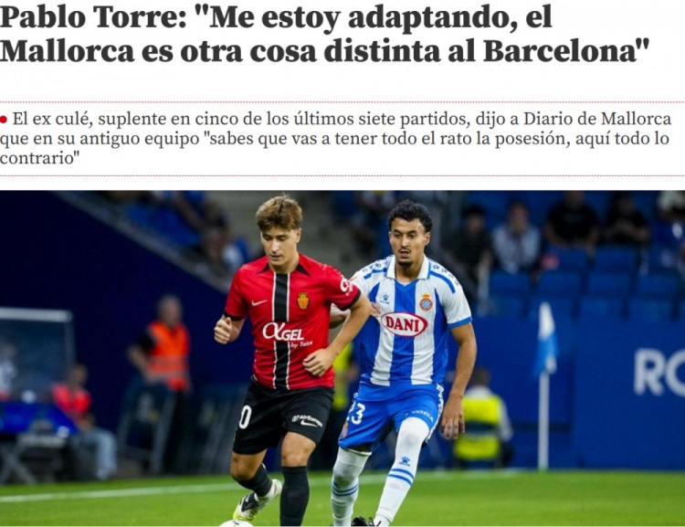 11月17日讯 巴勃罗·托雷今夏从巴塞罗那加盟马洛卡,被视为球队的迫切引援。底本托雷在巴萨出场时间不及的情况,并未在马洛卡得到通晓改善。日前,托雷领受了《马洛卡日报》的采访。