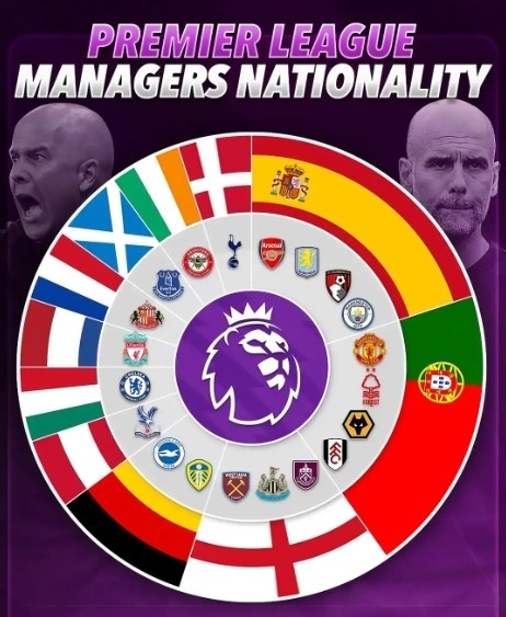 2025/26赛季英超,葡萄牙与西班牙教头(各4东谈主)简直占据半壁山河。
