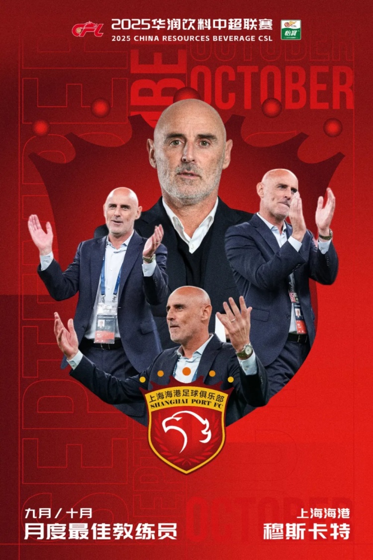 11月26日讯 中超联赛官方公布了9月、10月最好栽培东说念主选,上海海港主帅穆斯卡特当选。