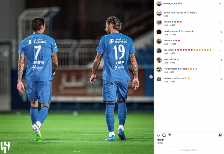 赛后努涅斯也晒出了和特奥等东说念主同框照。