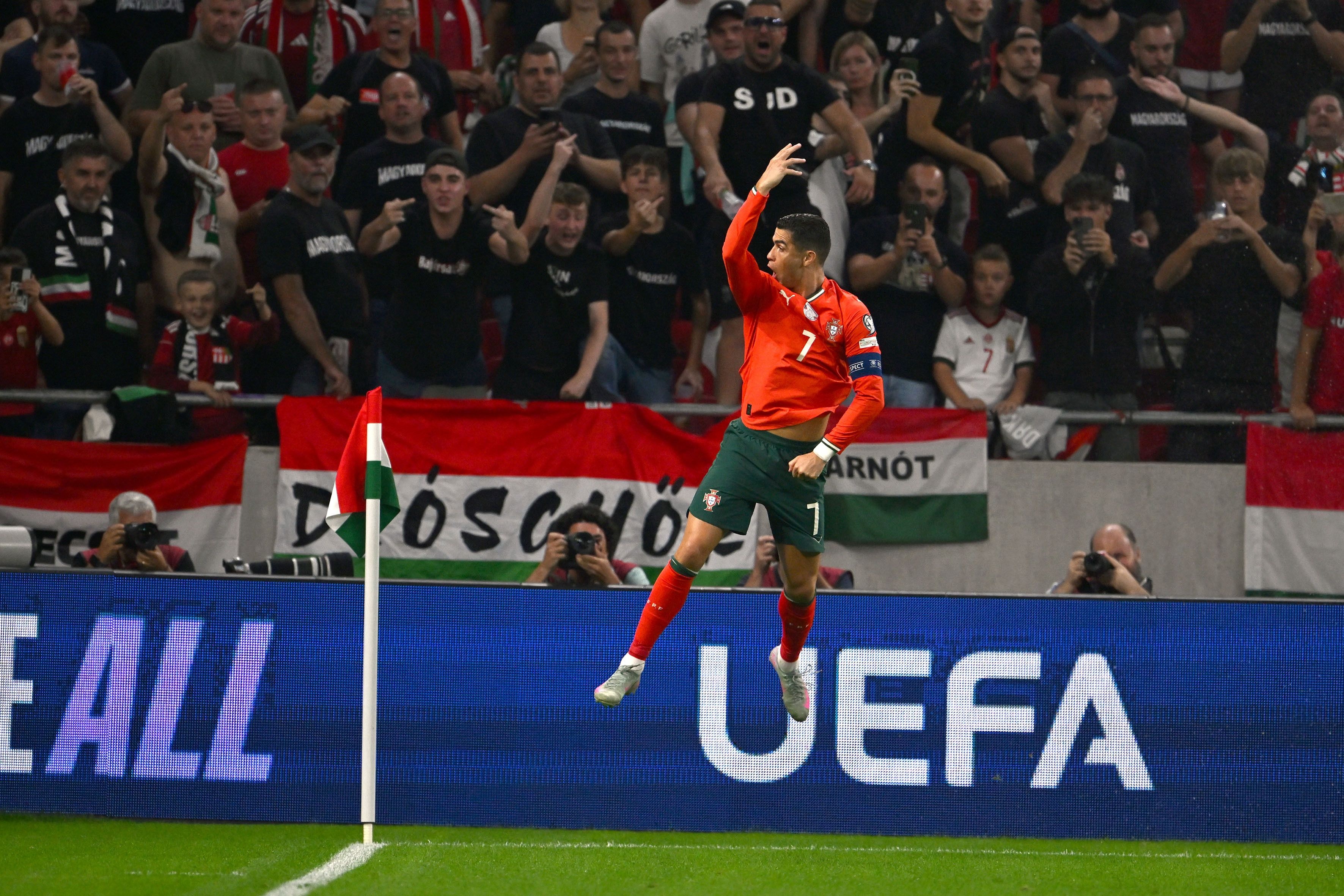 09月10日讯 世初赛欧洲区小组赛F组第2轮,葡萄牙3-2客胜匈牙利,C罗点射破门登顶世初赛历史弓手榜。